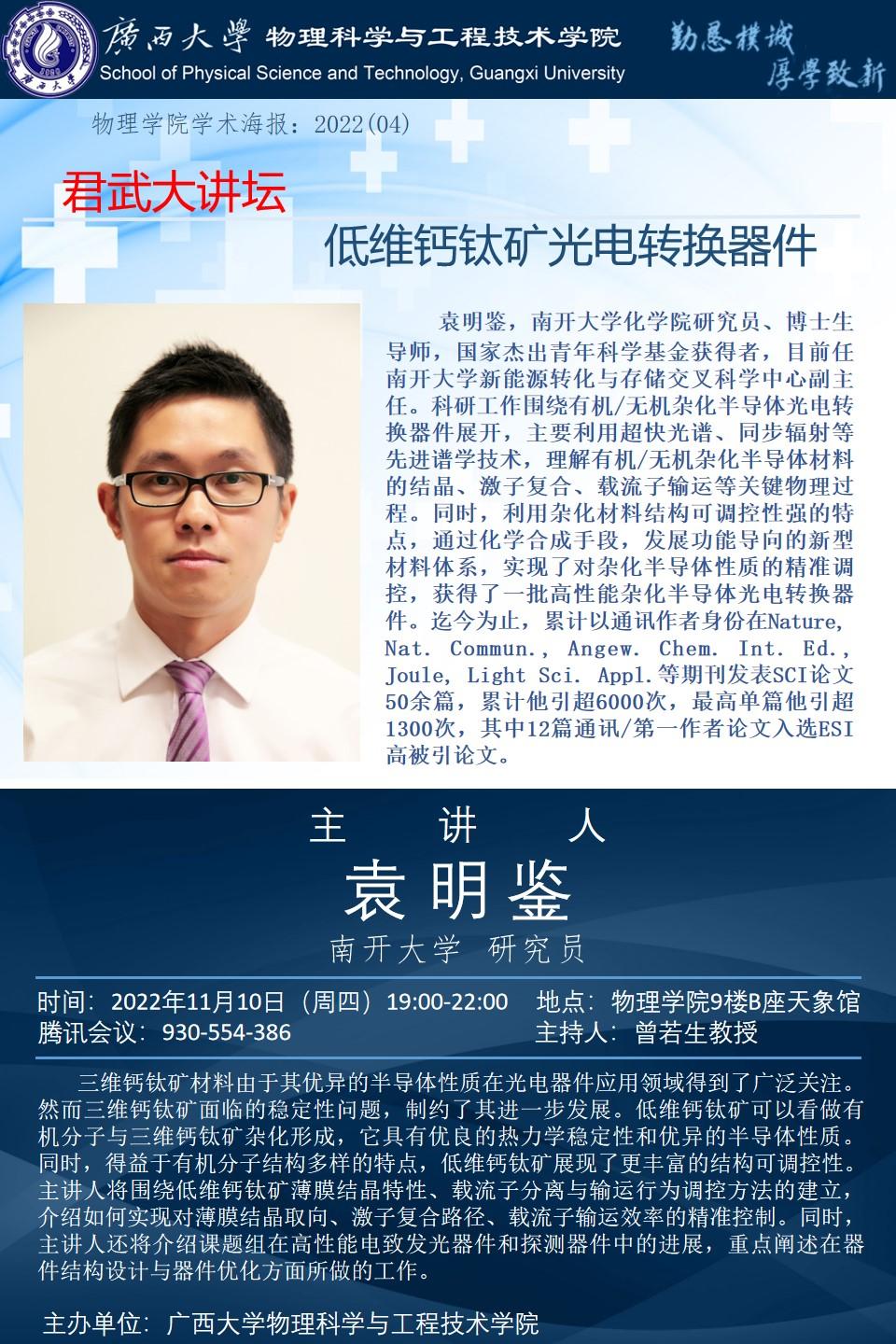 上一篇:2022年学术报告系列之05:海外名师大讲堂——新型金属卤化物钙钛矿材料的光物理性质:从量子点到幻数团簇和分子团簇