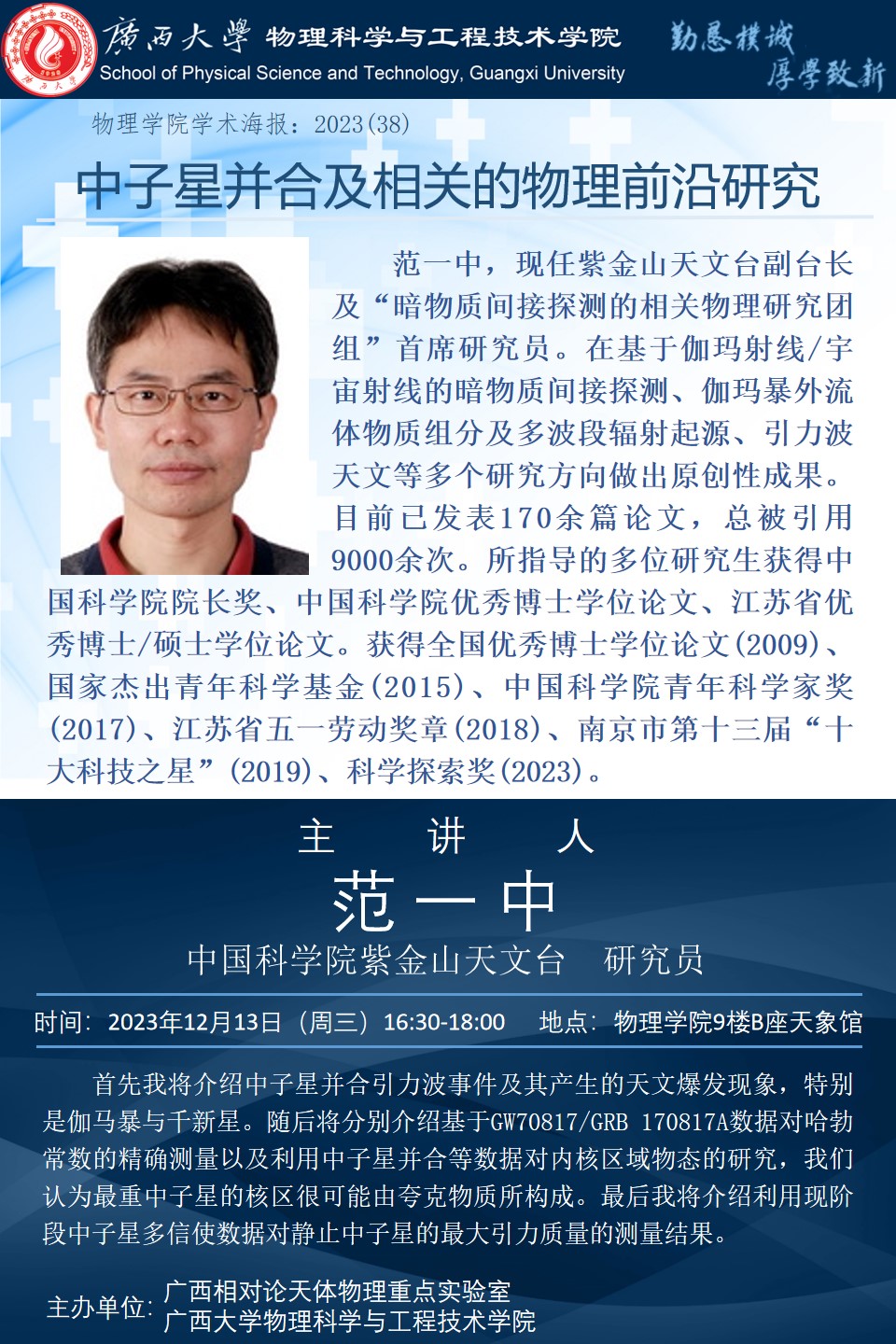 上一篇:2023年学术报告系列之39:超大质量黑洞的探寻