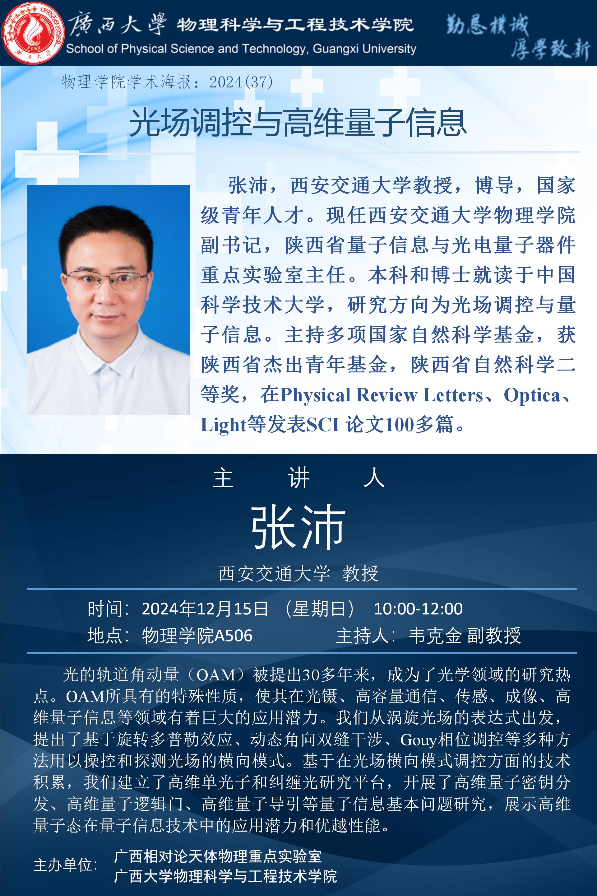 上一篇:2024年学术报告系列之38:面向教育强国目标,构建新型大学物理实验 课程体系,赋能创新人才培养