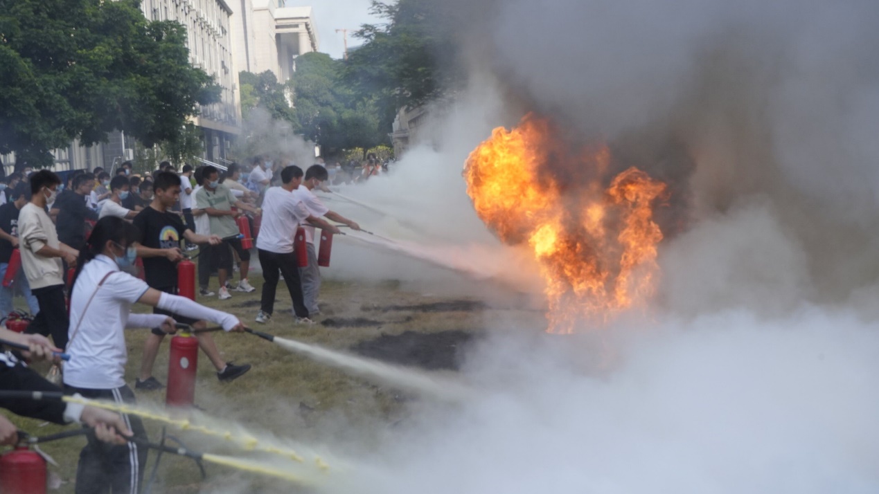 首先,保卫处黄光电老师在公司南侧空地讲授消防安全知识,并现场演示灭火器的正确使用方法。师生们在保卫处老师的指导下掌握了灭火器使用的相关技能,进行了消防灭火演练。