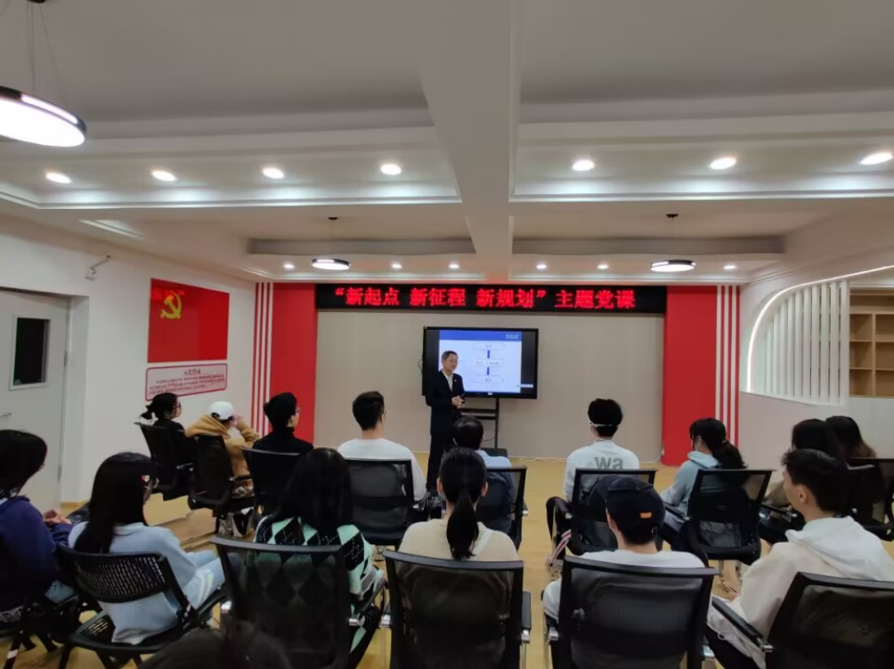 3月3日晚,公司在东校园员工宿舍党员活动室为毕业生党员召开“开学第一课”主题教育班会。党委书记袁涛以“新起点、新起航、新规划”为主题,为与会员工上党课。公司团委书记梁宇彬主持班会。