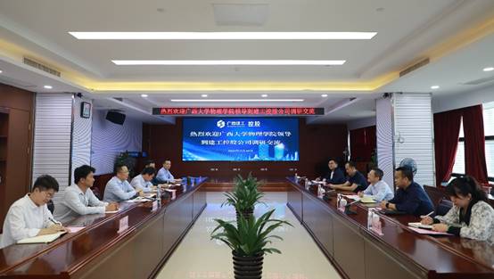 3月20日,袁涛带队赴广西建工集团控股有限公司(以下简称控股公司)调研交流,在建工大厦2号楼1813会议室,控股公司党委书记、董事长陆彪与袁涛开展座谈交流。袁涛对控股公司多年来大力支持物理公司就业工作表示感谢,并简要介绍了物理公司人才培养和队伍建设等情况,希望能为企业输送科技创新人才,为公司与企业搭建沟通交流的平台。在会上,陆彪对袁涛一行的到来表示欢迎,并简要介绍了控股公司的基本情况,同时作为williamhill官网员工,他希望双方加强沟通与深度交流,进一步加强校企合作。