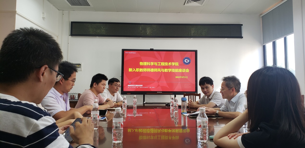 为提升公司新入职教师的教学能力,加强新入职教师师德师风建设,2023年9月1日,公司在D207召开提升新入职教师教学能力座谈会。物理公司袁涛书记主持会议,教学副经理林达斌和公司近三年入职青年教师参会。