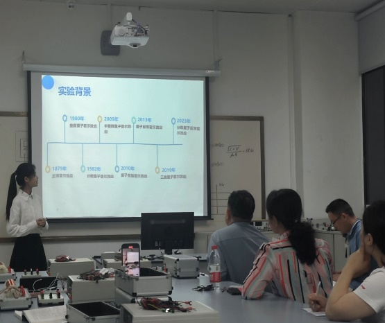 选拔赛上,6组同学针对《用集成霍尔传感器测量螺线管磁场》实验进行了多角度的授课,从课程思政、教学设计、实验原理和操作等多方面展示了物理实验课程的教学过程和教学思考,评审老师从教学设计、教学语态、多媒体展示、课程思政等多方面对参赛同学讲课进行了全方位的指导。