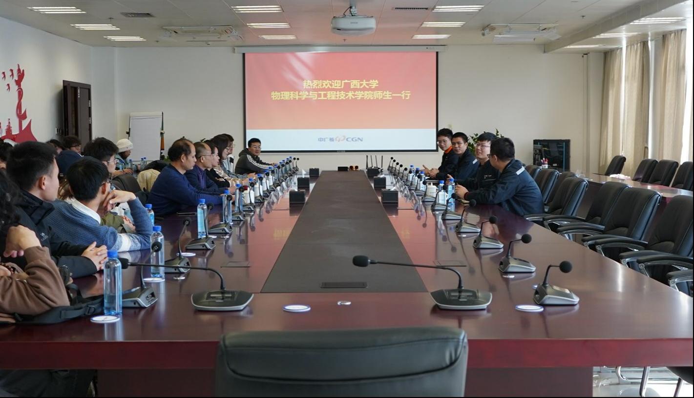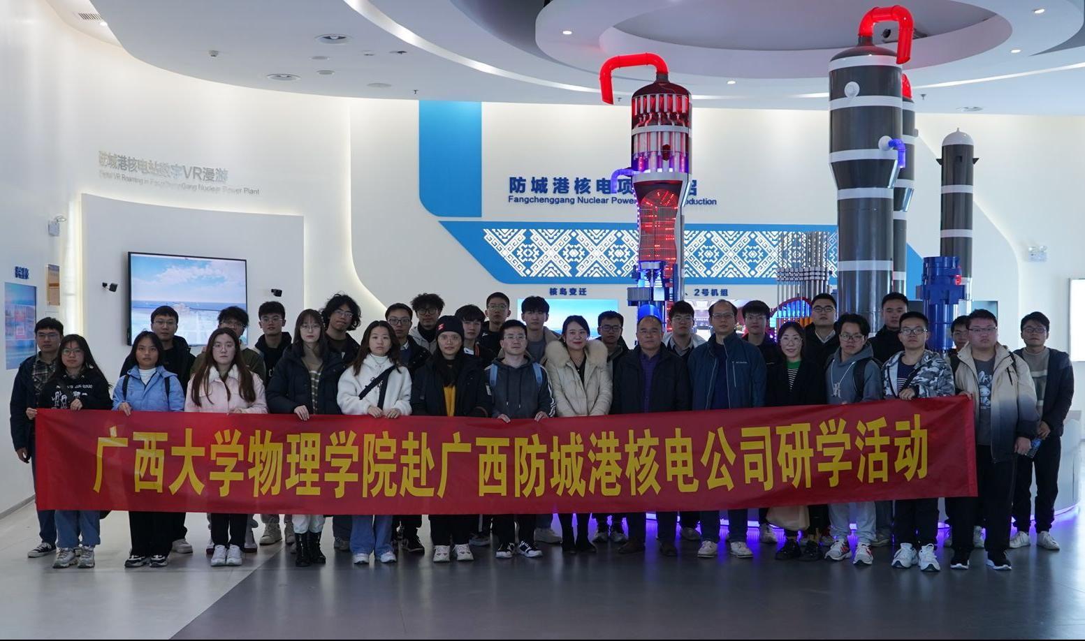 12月20日,公司师生赴广西防城港核电公司开展访企研学活动,并慰问了员工、与企业相关人员进行了座谈交流。此次活动由公司陆翔副经理带队,管永精教授、团委书记梁宇彬老师和辅导员周小琦老师及本硕博员工代表30余人参加。