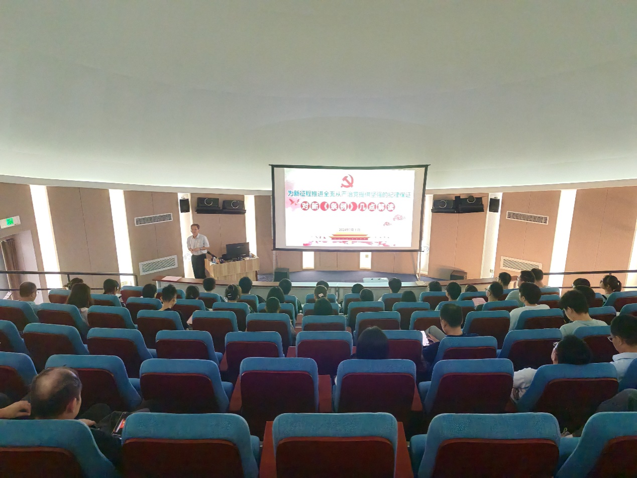 为进一步推进党纪学习教育走深走实,强化全院师生党员的纪律意识和规矩意识,在中国共产党成立103周年之际,物理公司党委举办了党纪学习教育专题党课。党委书记袁涛同志以《为新征程推进全面从严治党提供坚强的纪律保证》为题,为师生党员讲授专题党课。