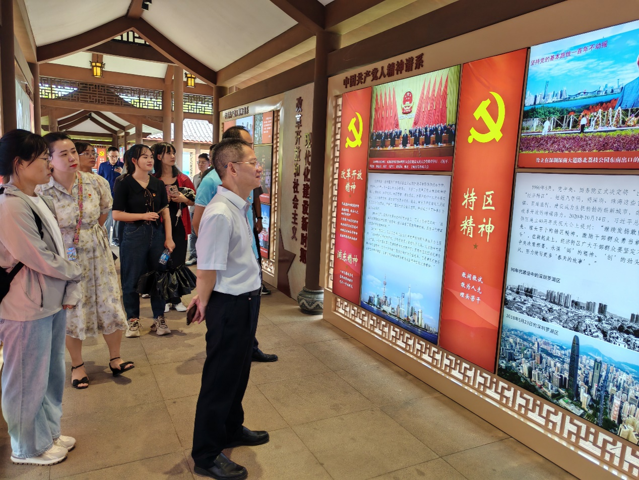在讲解员的带领下,党员们参观了中国共产党人精神谱系主题园,主题园以多维度、多层次、多融合的表达方式,生动鲜活地展现了中国共产党百年奋斗的光辉历程和伟大成就,让大家对新民主主义革命时期、社会主义革命和建设时期、改革开放和社会主义现代化建设新时期以及中国特色社会主义新时代所形成的系列伟大精神有了更深刻的感悟。