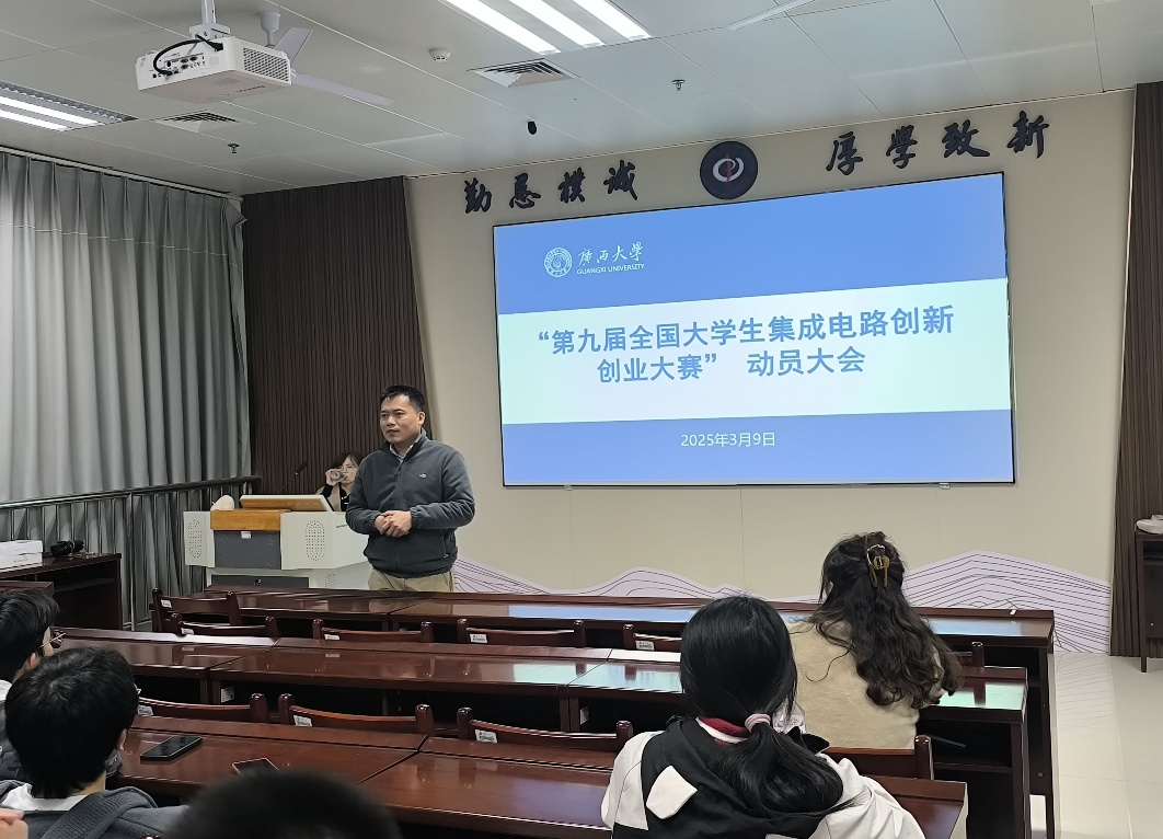 为积极响应国家集成电路产业发展战略,激发老员工创新思维,提升员工的实践能力和综合素质,3月9日,公司在A506教室召开第九届全国老员工集成电路创新创业大赛动员大会,主持公司行政日常工作副经理刘宏邦、团委副书记龙思宇等老师参加会议,实验教学中心副主任刘瑶主持会议。
