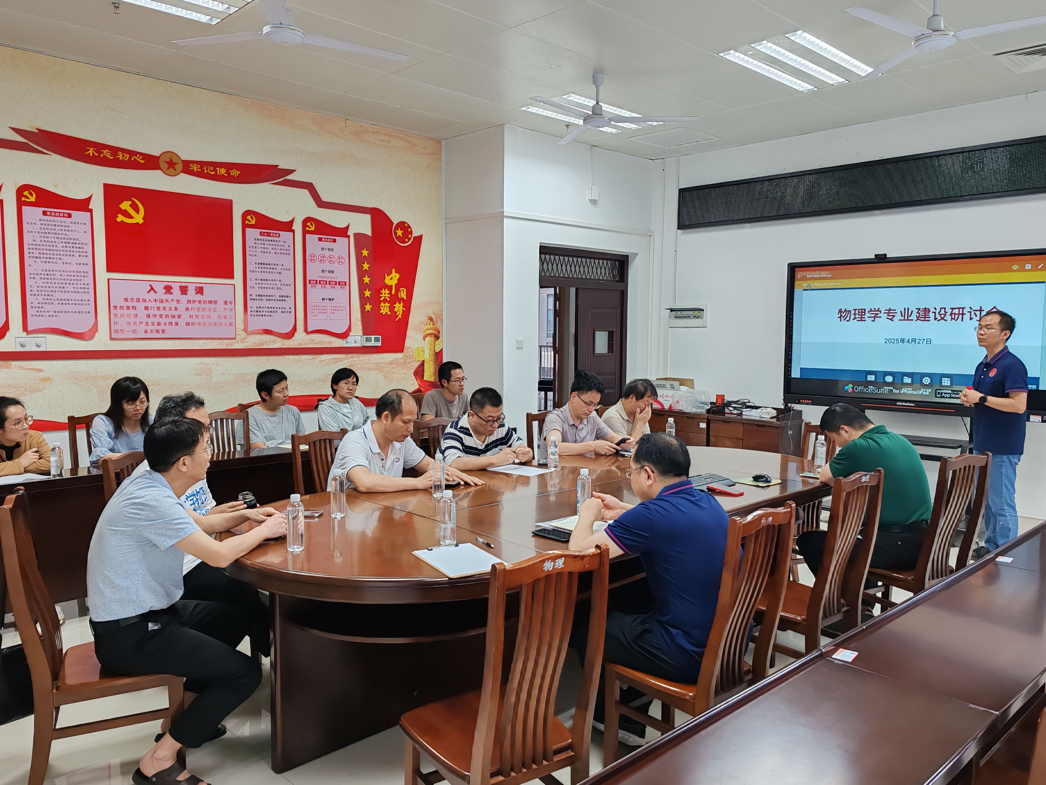 2025年4月27日下午,为落实《教育强国建设规划纲要(2024—2035年)》要求,提升物理学专业本科教学质量,公司物理系在物理楼D207召开物理学专业建设规划研讨会。会议聚焦专业长远发展,旨在借公司特色、专业优势与倍增计划资源,推动专业建设再上新台阶。物理系主任梁毅主持会议,副经理林达斌参加会议。