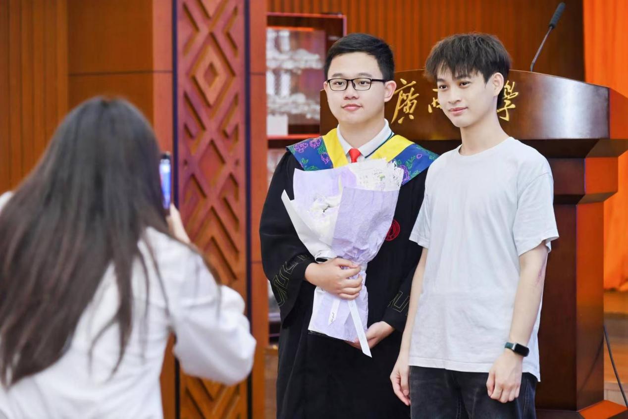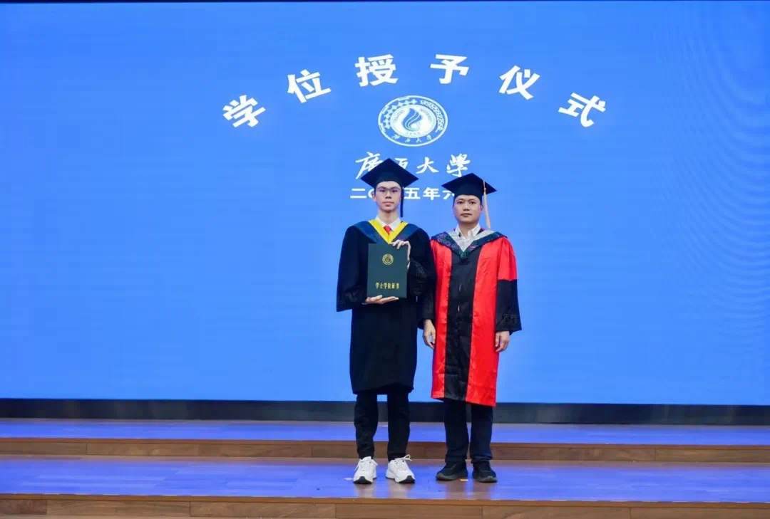 “复兴中华,发达广西”“努力,努力,大家一齐努力”……毕业典礼暨学位授予仪式在嘹亮的校歌声中落下帷幕。