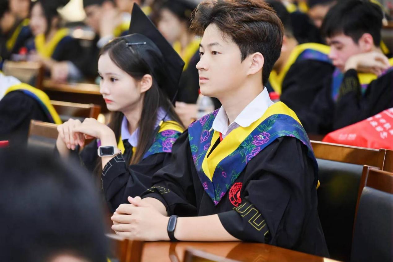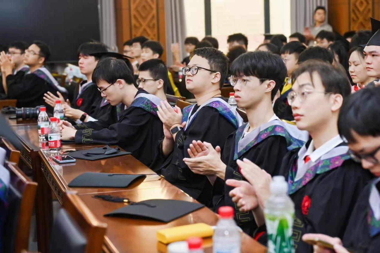 2025届博士研究生瞿杭在发言中回顾了六年硕博连读的旅程,表示毕业后将继续秉持“勤恳朴实”的态度,积攒“厚学致新”的能力,在未来走出属于自己的道路。