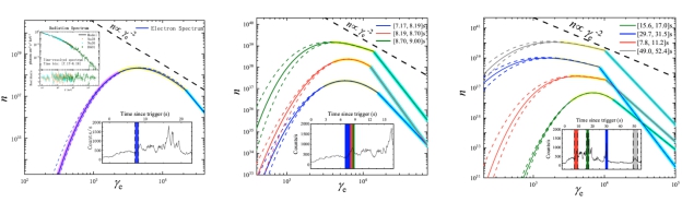 图二:拟合GRB 180720B(左和中)、GRB 160509A(右)得到的电子能谱。