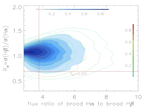 Fig. 1: Line width ratios of broad Balmer emission lines based on sub-pc BBH systems