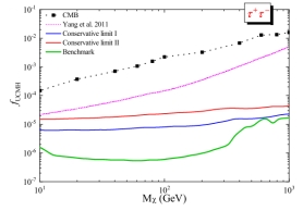 图二 τ+τ-湮灭道的UCMH丰度的限制结果