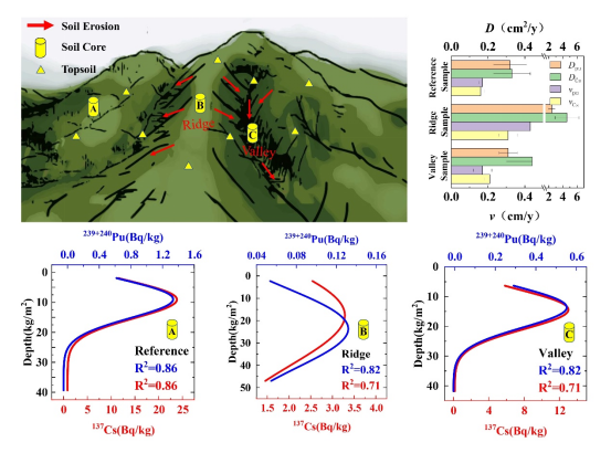 利用剖面分布模型(PDM)和库存模型(IM)评估了当地土壤侵蚀速率,结果显示,山脊地区的侵蚀速率(18.0 t∙ha-l∙a-1)约为山谷地区(7.3 t∙ha-l∙a-1)的2.5倍。