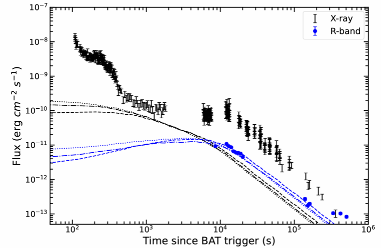 图4. GRB 240529A在X射线波段和光学波段的外激波模型拟合结果。