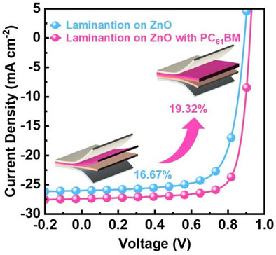 工作二:“Enhancing Adhesion and Reducing Charge Extraction Barrier Achieves 19.32% Efficiency in Inverted Organic Solar Cells with a Laminated Active Layer”发表在期刊《Small》上。